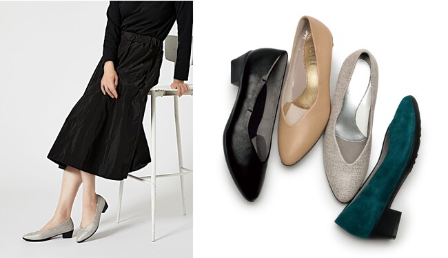 2023 年秋冬の新作は、パンプニーカーの履き心地の良さはそのままに、V カットデザインを甲部分に施し、足がより美しくみえるシルエットにこだわりました。また着用シーンやスタイリングに合わせて選んでいただきやすいよう、汎用性の高いベーシックカラーから、今期のトレンドカラーまで揃う全8色と幅広いカラー展開でご用意しています。