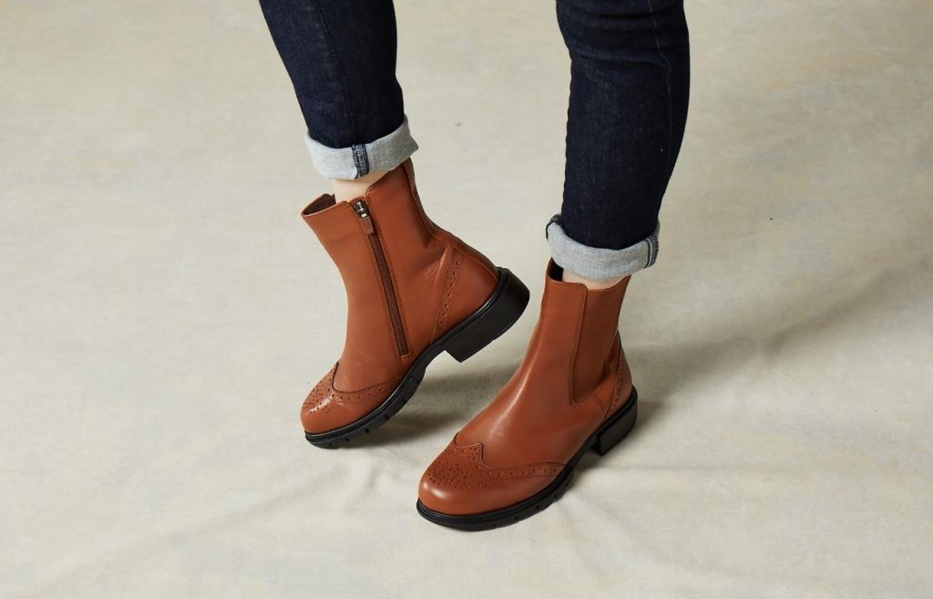 本商品のポイントは、ソールに凹凸がついたボリューム感のある「タンクソール」 と、クラシックなメダリオン柄。いずれも2022年のトレンドデザインです。また、スタイルアップを意識し、足がほっそり見えるような筒のシルエットにしています が、サイドゴアに加えてジッパーを斜めに配すことで、ほっそりした筒まわりであっても着脱しやすい仕様になっています。